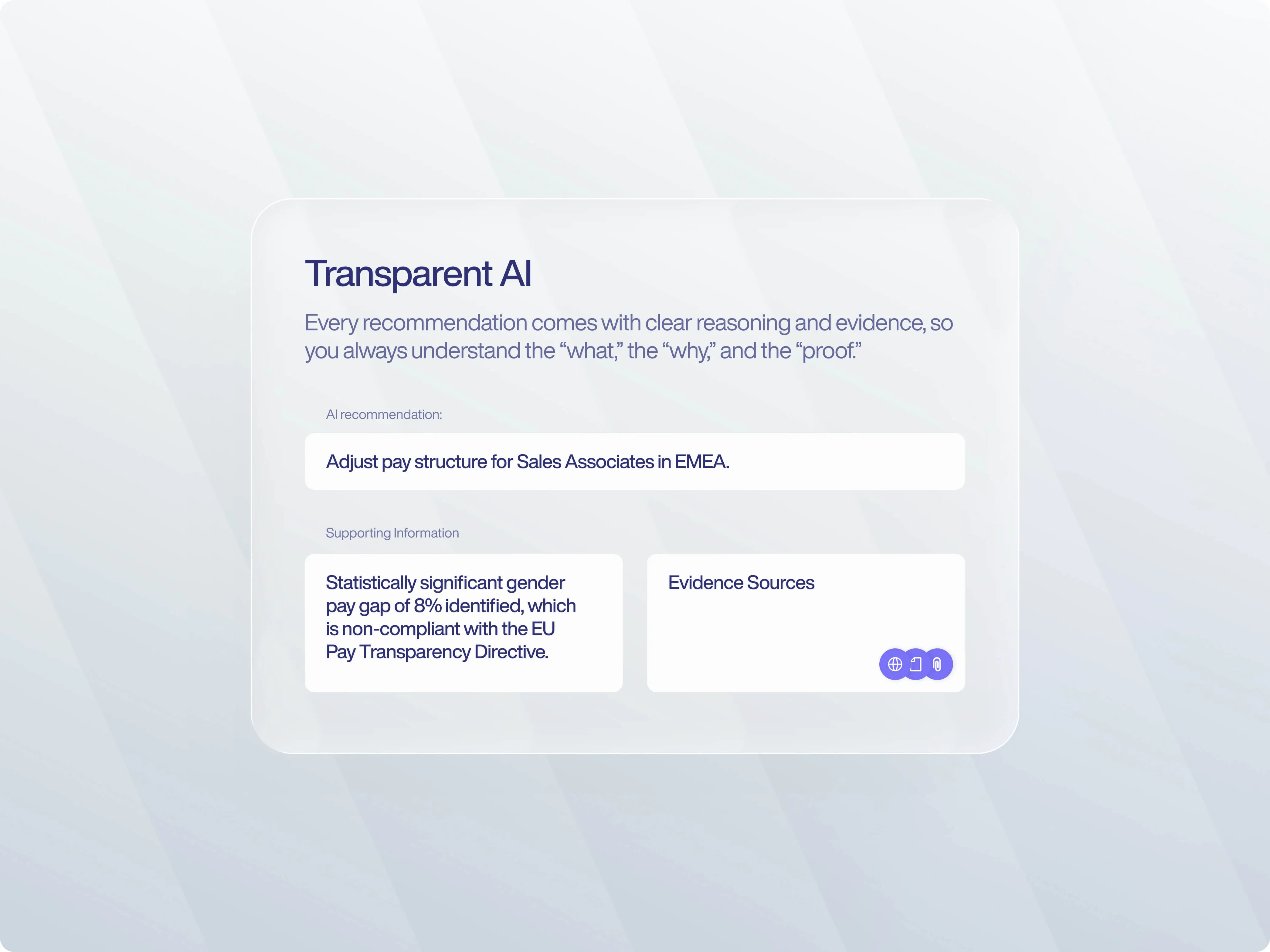 Our AI governance framework aligns with the EU AI Act, GDPR, NIST, ISO 42001, and emerging U.S. state and global AI standards. That means future-proof compliance for your pay equity, pay transparency, and reporting initiatives wherever you operate.